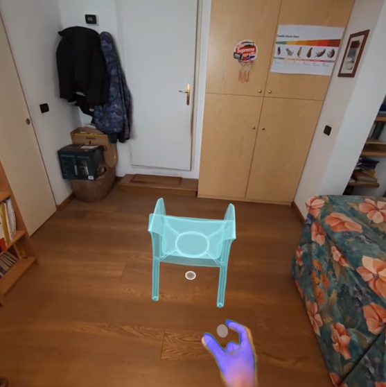 A mixed reality application that scans physical spaces and allows users to place and explore furniture models using hand tracking and an interactive catalog interface.